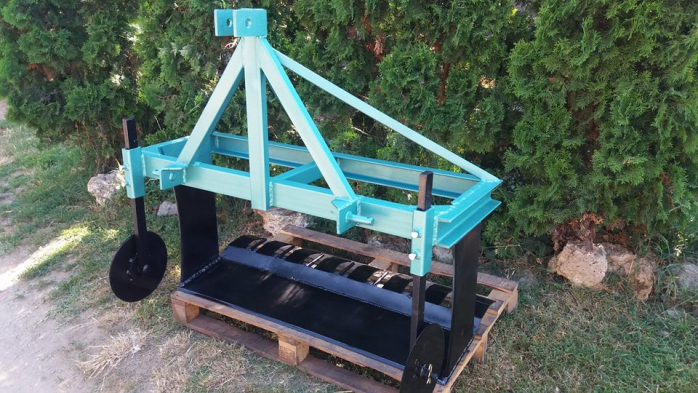 Состоит из рамы с навеской на трактор, на которой установлен подкапывающий нож и два подрезающих диска. Ширина захвата 120 см Вес 130 кг.